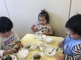 そして進級に向けて、座ってお話を聞いたり、ねこ組さんこねこ組さん一緒に同じ机でご飯を食べて交流を深めています☺️