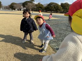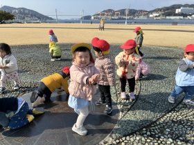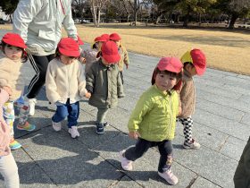 お兄さんお姉さんに手を繋いでもらってお散歩に出かけたり、園バスでお出かけして水辺の森で自由に走り回ったりして毎日いろんな活動を楽しんでいます♪