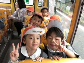 バスのなかでは、ゆめぎんがの振り返りやなぞなぞ大会、お遊戯会の劇のセリフを聴きながら行きました。
