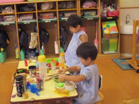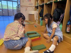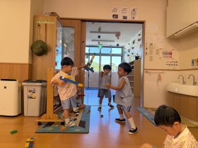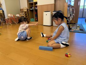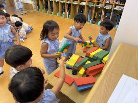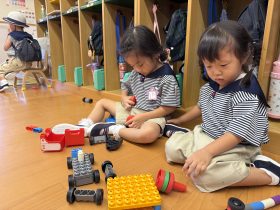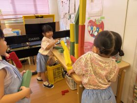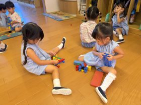 玩具で遊ぶ時間には、自分達で上手にブロックなどを組み立てて遊ぶ姿が見られるようになってきました。