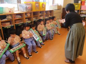 音楽教室で、初めてメロディオンに挑戦しました。