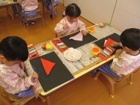 折り紙でサンタクロースの帽子を作りました🎅
