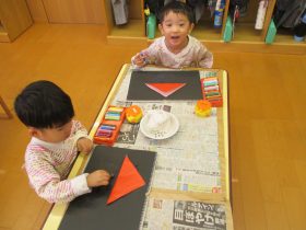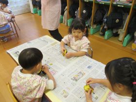 お部屋で給食後に「やきいもグーチーパー♬」を歌って、みんなでやきいもを食べました(^▽^)/