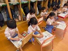 年長さんのお別れ会に向けて、ダンスの練習やお面作りをしています🖍