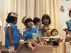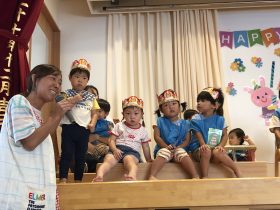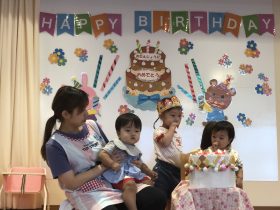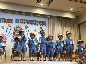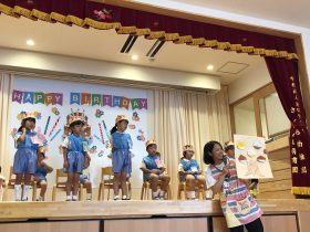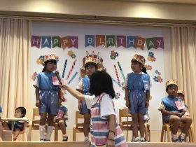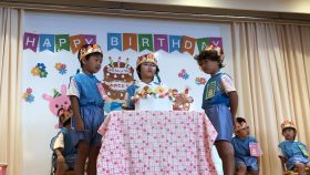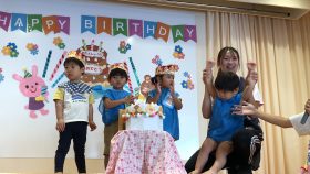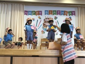 年中さんは、9月のお誕生日会にお休みしていたお友だちも一緒にお祝いしました🎉