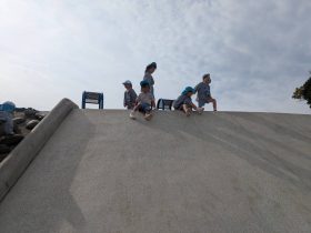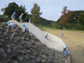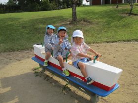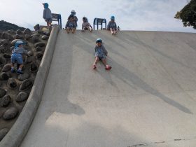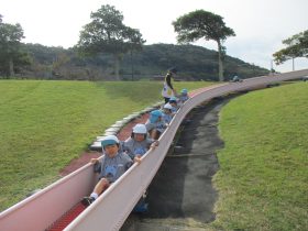 道中でどんぐりを拾ったり、面白い遊具があり、子どもたちも大興奮で遊んでいました☺