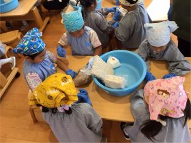 今日は年長さんと一緒にお味噌作りに挑戦しました。😊✨✨